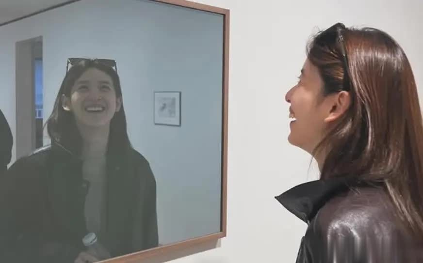 她和好友前往英国皇家美术馆的画廊参观画展,章泽天朋友的镜头之中,对着镜子互动灿笑,真实素颜状态曝光。